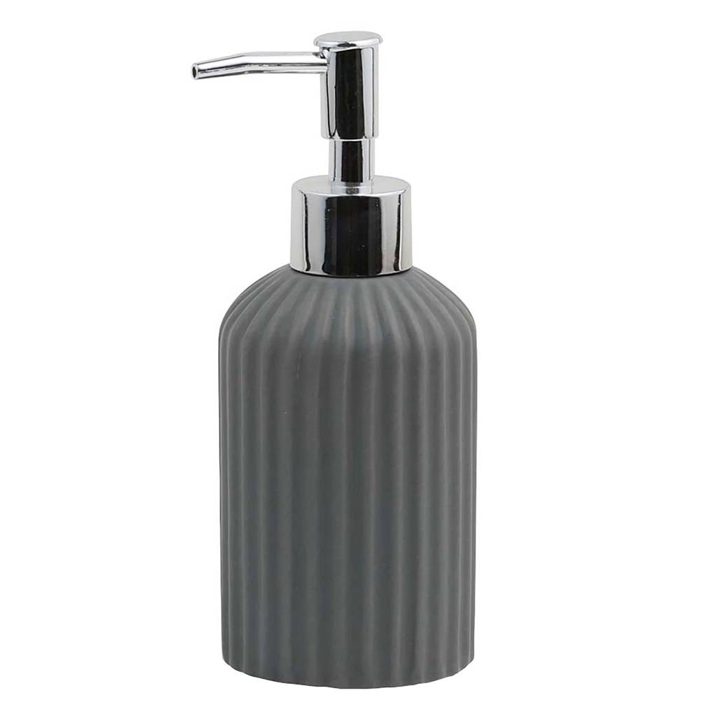 Šedý dávkovač na mýdlo Lavado je praktický a estetický prvek vybavení koupelny, který dokonale spojuje moderní styl s funkčností. Vyroben z dolomitové keramiky s vertikálním drážkováním, skvěle ladí jak s minimalistickými, tak s industriálními aranžmá interiéru. Solidní pumpička z plastu zajišťuje přesné dávkování tekutiny a pohodlí při každodenním používání. Díky kompaktním rozměrům a neutrálnímu odstínu šedé se tento dávkovač hodí ke každému umyvadlu a dodává prostoru uspořádaný a ucelený vzhled.