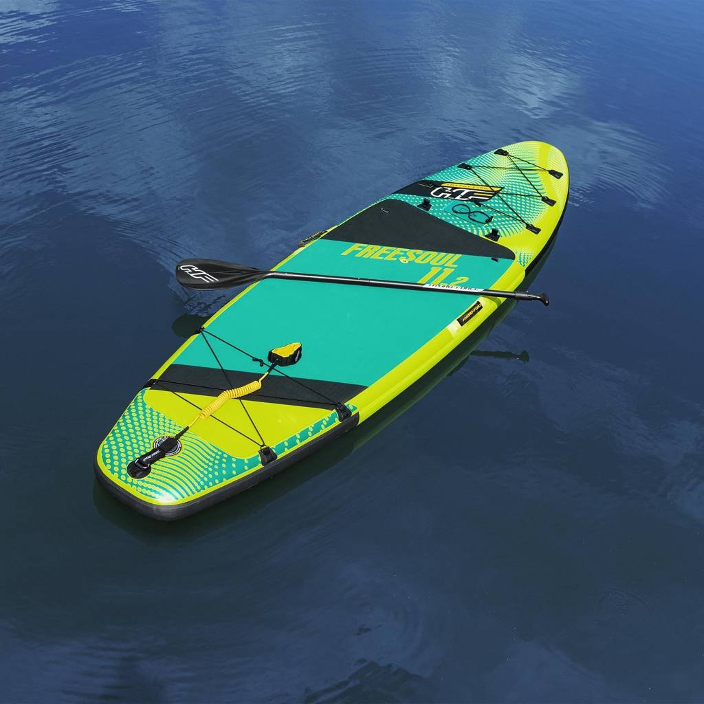 Deska SUP Hydro Force® Freesoul™ 2v1 Set je ideálním řešením pro milovníky vodních sportů, kombinující funkčnost SUP prkna a kajaku. Kompletní sada obsahuje veškeré potřebné příslušenství, díky čemuž je tato deska skvělou volbou jak pro klidné vody tak pro dlouhé trasy. Díky inovativnímu designu FortiFiber™ Drop Stitch zaručuje deska stabilitu, odolnost a snadnou přepravu. Maximální nosnost desky je 160 kg, což zaručuje její univerzálnost. Lehká konstrukce a praktický batoh, které jsou součástí sady, umožňují snadný transport a rychloventil umožňuje účinné nafouknutí a vyfouknutí.
