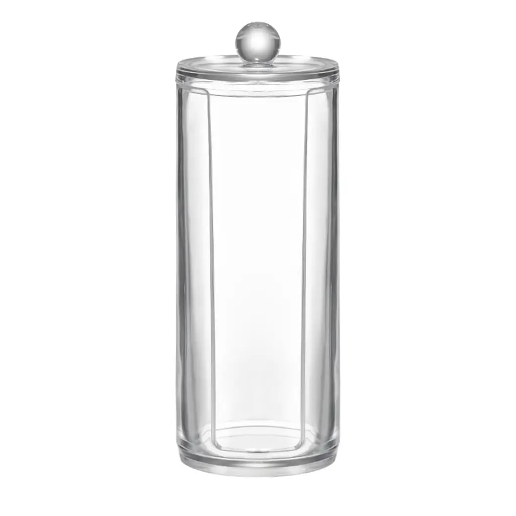 Víčko chrání vatové tampony před prachem a vlhkostí a transparentní stěny umožňují průběžně kontrolovat jejich množství. Díky jednoduché konstrukci zásobník vypadá dobře na desce, polici nebo v koupelnové skříňce.