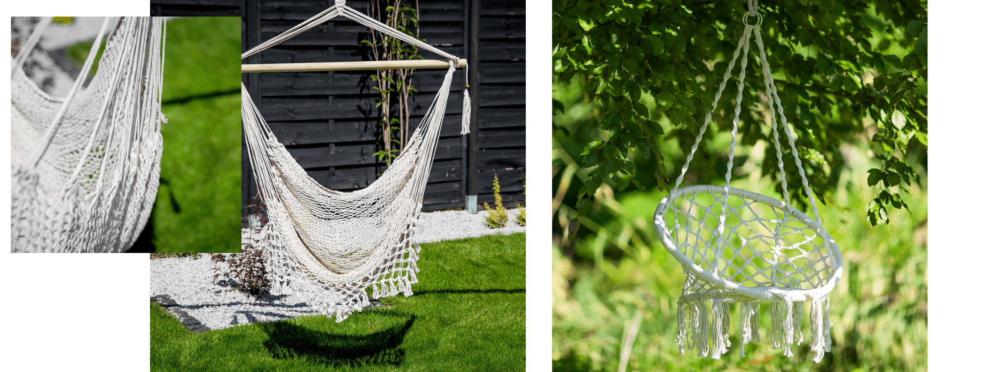 Do nabídky boho houpaček přibyl jedinečný typ nábytku, a to závěsné makramé houpačky a kulaté kokony. Jsou to řešení, která si zamilovaly nejen zahrady, ale také balkony, terasy a interiéry bytů. Jejich ručně pletená konstrukce v boho stylu vnáší do prostoru lehkost, umělecký šmrnc a autentickou atmosféru odpočinku v duchu slow life.