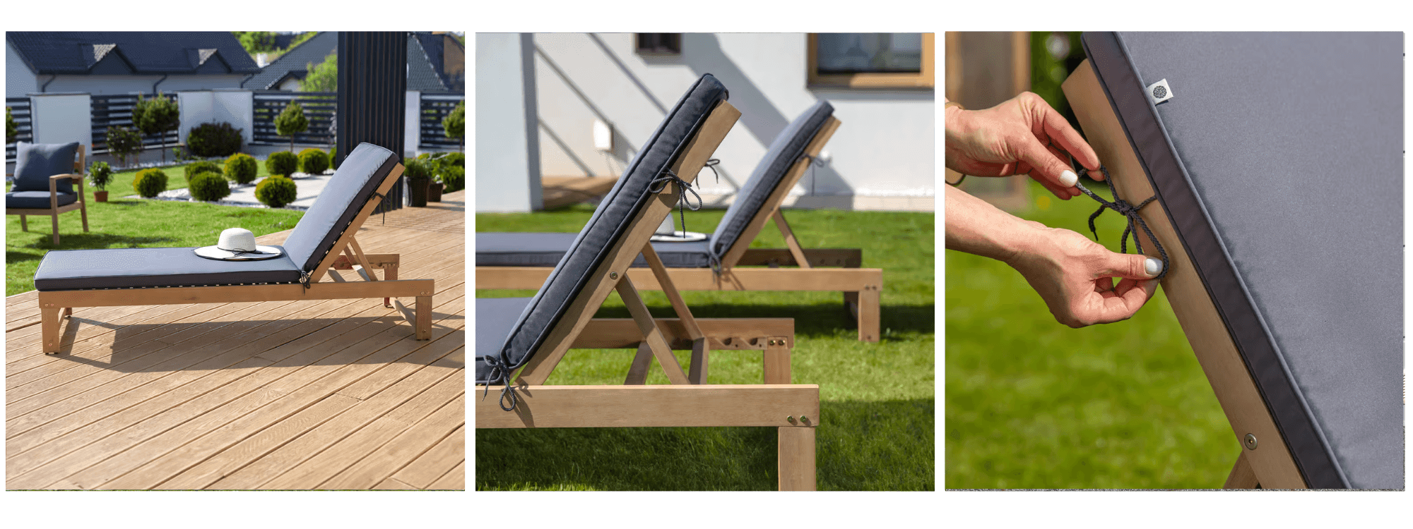Pro všechny, kteří potřebují jednoduché a přenosné řešení. Je to vynikající lehátko na balkon – jeho malá šířka se vejde i na malý balkon v paneláku a po složení jej lze opřít o stěnu za balkonové dveře. Je také ideální na pláž a výlety – bez problémů jej vložíte do kufru auta. Studenti, nájemníci, zahrádkáři – všude tam, kde záleží na mobilitě a rozpočtu, bude Gozo vhodnou volbou, protože obvykle stojí méně než robustní lehátka s polstry. Stylově lehátko Gozo zapadá do atmosféry casual, boho a skandinávského stylu. Dřevěný rám a plátěný sedák vytvářejí přirozený letní vzhled – stačí přidat pléd s etnickým vzorem a solární lampičky a získáte nádech boho-chic na terase. Naopak černá nebo šedá verze u bazénu nebo v moderní zahradě dodá lehkost a prázdninovou uvolněnost (dřevěná lehátka tohoto typu se ráda používají v módních beach barech a moderních hotelech, protože nezatěžují prostor). Je však třeba pamatovat na to, že komfort Gozo je trochu jiný než v případě modelů Lena nebo Modena – absence silného polstru znamená tvrdší pocit (ačkoliv se materiál pod tělem prohýbá). Pro kratší odpočinek, opalování nebo posezení u ohně poslouží skvěle, ale pro dlouhé hodiny čtení knihy může lidem s citlivější páteří chybět dodatečná opora. Přesto snadná obsluha a kouzlo klasického lehátka způsobují, že si Gozo získává srdce uživatelů, kteří oceňují svobodu – jak na zahradě, tak mimo ni.
